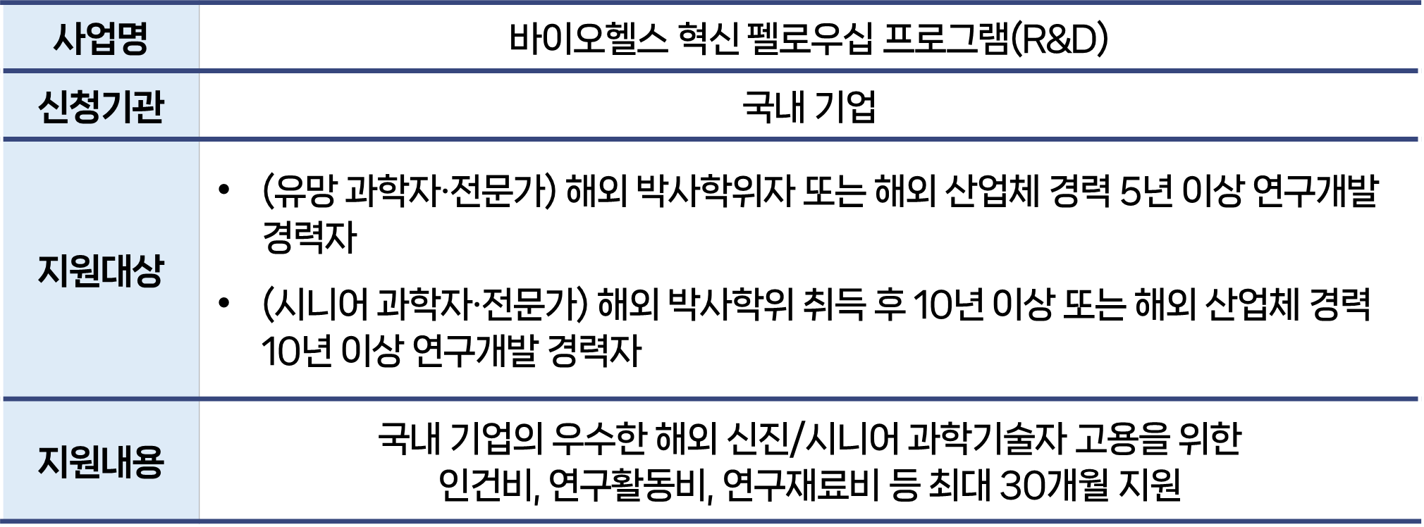 귀하가 제출해 주신 의견은 「바이오헬스 혁신 펠로우십 프로그램(가칭)」 방향 설정에 활용될 예정이오니, 바쁘시더라도 시간을 내시어 설문조사에 응답해주시면 감사드리겠습니다.